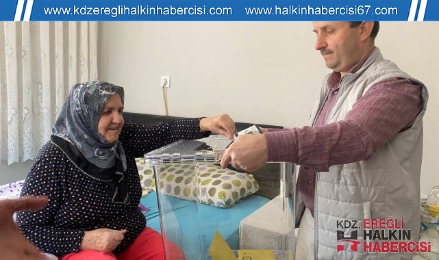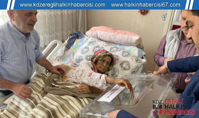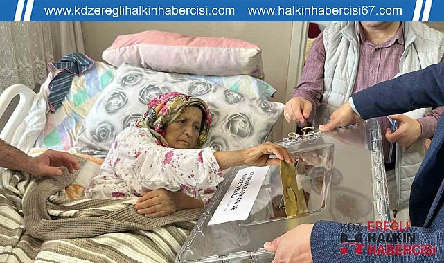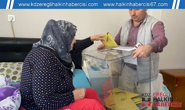 Düzce'de yatağa bağlı ya da felci olan 26 seçmen için oy sandığı evlerine gitti. Seçim kurulu görevlileri evlere giderek başvuru sahiplerine oy kullandırdılar.