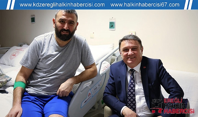 Zonguldak Belediye Başkanı Tahsin Erdem, tedavi altına alınan Belediye Güvenlik Amiri Korhan Ali Erdem'i hasta yatağında ziyaret etti. Zonguldak Belediye Başkanı Tahsin Edem, bir süre önce rahatsızlanan güvenlik amiri Korhan Ali Erdem’i tedavi gördüğü İzzet Baysal Fizik Tedavi ve Rehabilitasyon Eğitim ve Araştırma Hastanesi’nde ziyaret etti.