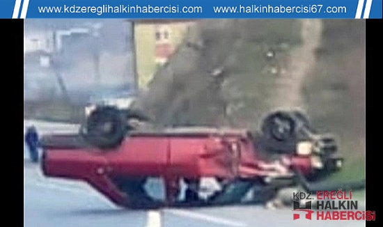 Olay; Ereğli Zonguldak yolu Ören mevkiinde meydana geldi. İddiaya göre, henüz plakası ve ismi öğrenilemeyen araç sürücüsünün virajı alamayarak direksiyon hâkimiyetini kaybetmesi sonucu takla attı. Takla atan aracı gören vatandaşlar durumu sağlık ekiplerine bildirdi. Kısa sürede olay yerine gelen sağlık ekipleri araç sürücüsü ve yanında ki yolcuyu ambulansa alarak yaptıkları ilk müdahalenin ardından Devlet hastanesine kaldırdı. Hastanede tedavisi yapılan araç sürücüsü ve yolcusunun hayati tehlikesi olmadığı öğrenilirken, kaza ile ilgili soruşturma başlatıldı.