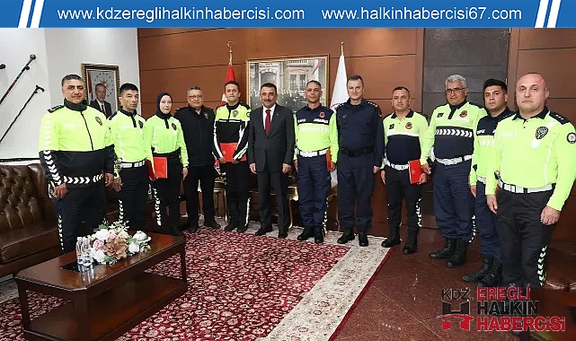 Zonguldak’ta Trafik Haftası kapsamında, trafik güvenliğinin sağlanmasına yönelik özverili çalışmalarıyla öne çıkan emniyet ve jandarma trafik personeli, Zonguldak Valisi Osman Hacıbektaşoğlu tarafından başarı belgesi ile ödüllendirildi.Valilikte düzenlenen törende, trafik düzeni ve güvenliğinin sağlanması adına gece gündüz görev yapan polis ve jandarma ekiplerinin çalışmaları takdir edildi. Vatandaşların can ve mal güvenliğine doğrudan katkı sağlayan bu hizmetlerin önemine vurgu yapıldı.Vali Osman Hacıbektaşoğlu, belge takdiminde bulunduğu trafik personelini tebrik ederek, görevlerinde başarılar ve kolaylıklar diledi.