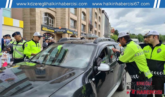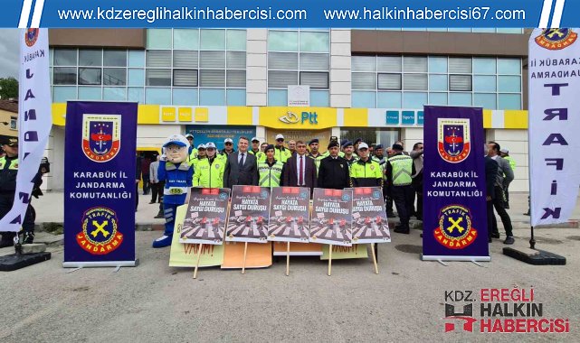 Karabük'te Trafik Haftası etkinlikleri çerçevesinde Vali Fuat Gürel ve beraberindekiler, sürücülere lokum ve bilgilendirici broşür dağıttı.