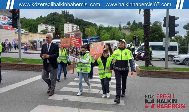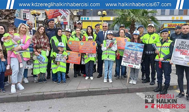 Zonguldak'ın Ereğli ilçesinde Trafik Haftasın da sürücülere broşür dağıtıldı.Ereğli'de Trafik Haftası nedeniyle Müftü Mahallesi Devrim Bulvarında etkinlik düzenlendi. Etkinliğe Kdz. Ereğli Kaymakamı Mehmet Yapıcı, Ereğli İlçe Emniyet Müdürü Hasan Ünlü, Ereğli İlçe Jandarma Komutanı Üsteğmen Ali Akça, öğretmen ve öğrenciler katıldı.Etkinlikte protokol, emniyet ve jandarma personeli ile öğretmen ve öğrenciler kırmızı ışıkta duran sürücülere trafik kurallarına dikkat çekmek için broşür verdi. Bazı öğrenciler ise yaya geçidinde durarak ellerindeki döviz ve pankartlarla sürücüleri uyardı.Etkinlik sonunda kısa bir açıklama yapan ilçe kaymakamı Mehmet Yapıcı ise: "Trafiğe dikkat çekmek için geldik, burada toplandık. Sayın İçişleri Bakanımızın emriyle daha güvenli bir trafiğe dikkat çekmek için buraya geldik. Şoförlerimizin dikkatini çektik. İnşallah daha güvenli bir trafiğe ülke olarak kavuşuruz" dedi.Konuşmanın ardından protokol, emniyet, jandarma personeli öğrenci ve öğretmeler ile günün anısına fotoğraf çektirdi.