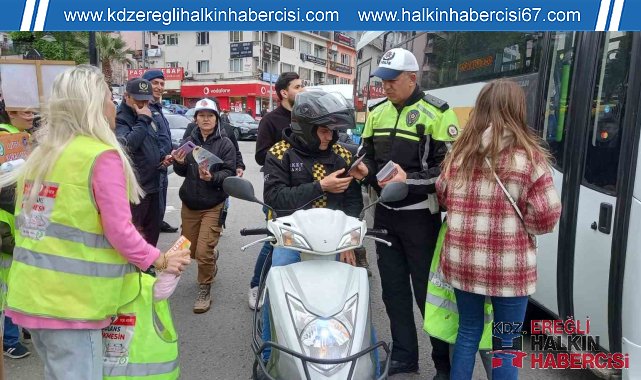 Zonguldak'ın Ereğli ilçesinde Trafik Haftasın da sürücülere broşür dağıtıldı.