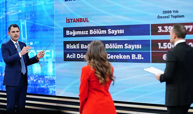 Bakan Kurum, konuşmasında İstanbul'un yapı stokuyla ilgili verileri de paylaştı: İstanbul'da 2000 öncesi 3 milyon 393 bin bağımsız bölüm yapılmış. 2025 yılı itibarıyla İstanbul'umuzda 8 milyon 70 bin bağımsız bölüm var. Bunun 3 milyon 393 bini 2000 yılı ve öncesi. Bizim yeni yayınladığımız yönetmelikten önce yapılmış yapılar. Yani yıkılma riski yeni yönetmeliğe göre yapılmadıkları için diğer binalara göre daha fazla. Onun da incelemesini yaptık. Bugün baktığımızda bağımsız bölüm sayısı 8 milyon 70 bine çıkmış ve bu şu demek yüzde 60'ı yeni yönetmeliklere göre yapılmış, mühendislik hizmeti almış ve orada bir plan proje çerçevesinde inşa edilmiş yapılar. 2000 yılındaki bina stokuna baktığınızda İstanbul'un tamamı riskliyken bugün İstanbul'un yüzde 60'ı güvenli hale gelmiş. Diğeriyle ilgili devletimiz bir mücadele ediyor. Bu 3 milyon 300 bine de baktığımızda, zemin sınıflarına, sıvılaşma riskine, ruhsat yığına göre değerlendirdiklerinde 1,5 milyonunun riskli olduğunu görüyoruz. Acilen dönüşmesi gereken 600 bin konut. Bu aslında İstanbul'u kurtarma operasyonumuz. Biz 2012 yılından bugüne 548 bin bağımsız birimi yıkmışız. 2012 yılından bugüne 923 bin bağımsız bölümü dönüştürmüşüz.