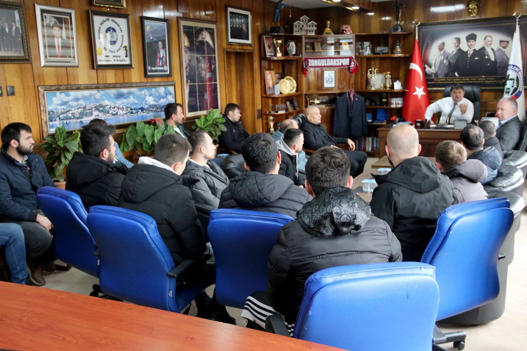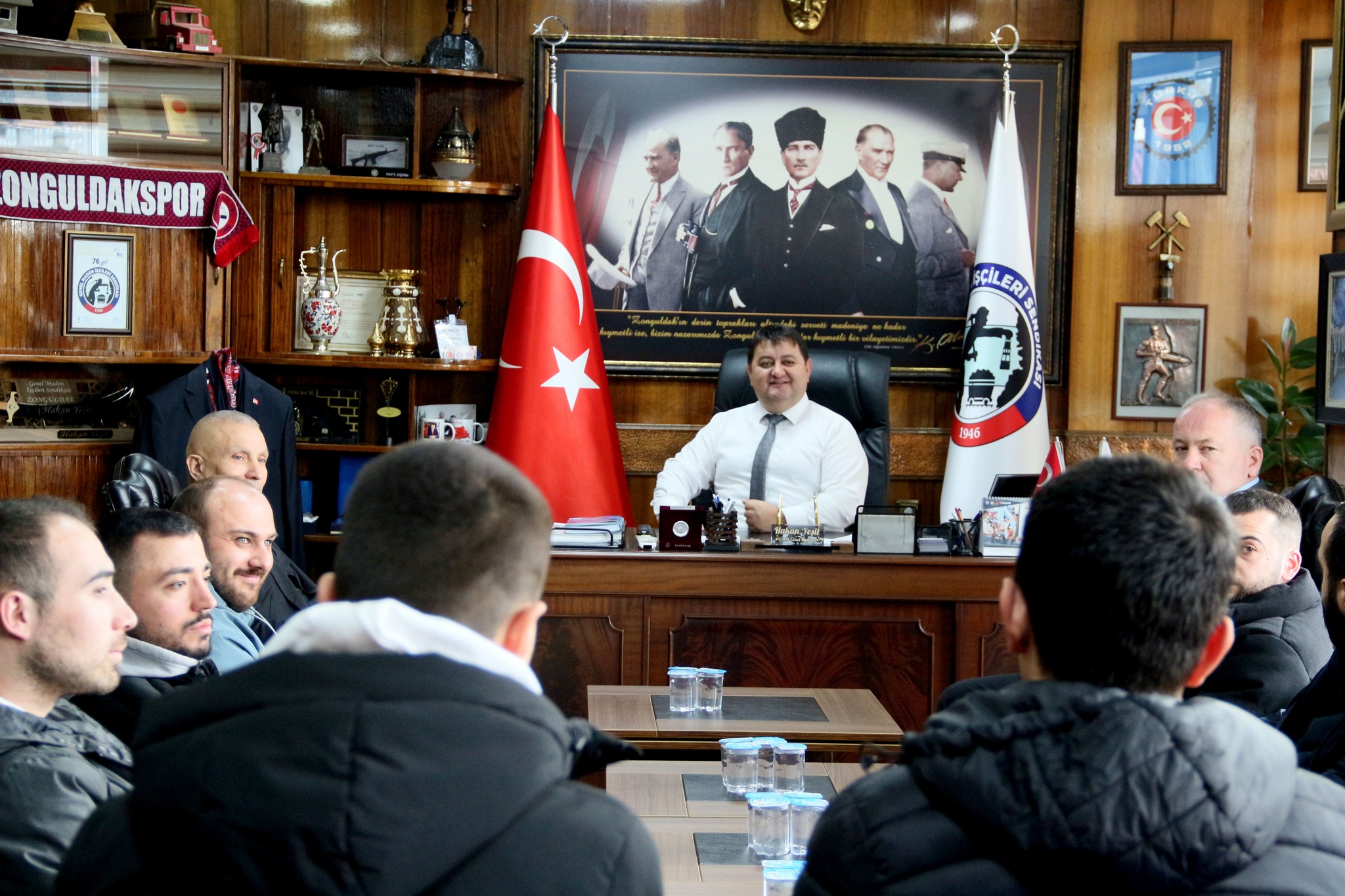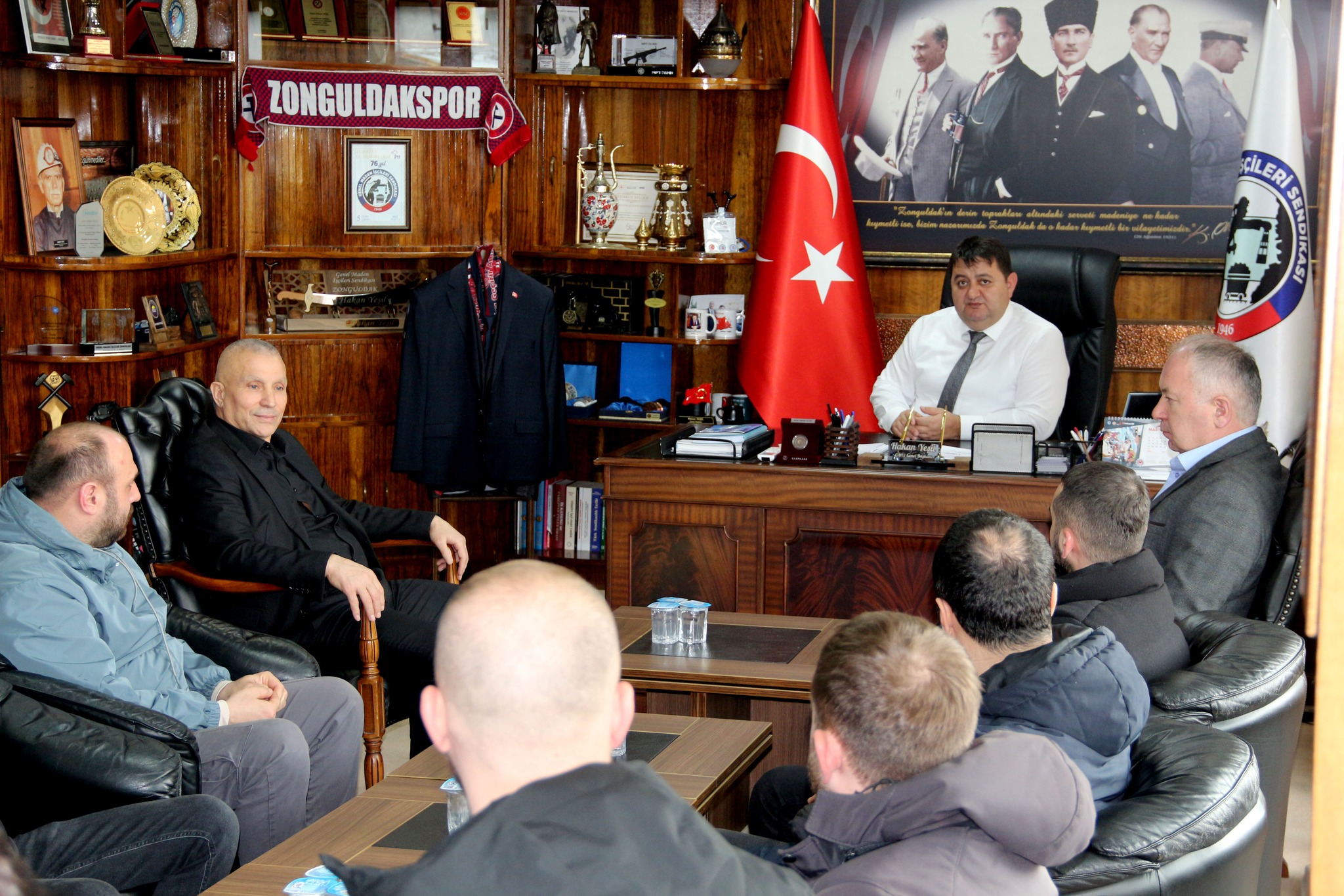 Türkiye Taşkömürü Kurumu (TTK) Üzülmez Müessese Müdürlüğü'nde gruplu çalışan madenciler, Genel Maden İşçileri Sendikası’nı (GMİS) ziyaret ederek Genel Başkan Hakan Yeşil ile görüştü.