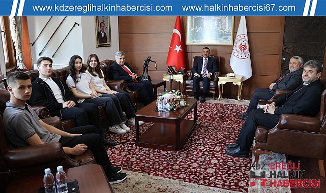 Eylül Kaynar (Fen Lisesi), Ceren Karataş (Fen Lisesi), Yahya Orta (Zonguldak AİHL), Resul İlyas Aksoy (Saime Toptan Anadolu Lisesi) adlı öğrenciler ve İl Millî Eğitim Müdürü Osman Bozkan, Vali Osman Hacıbektaşoğlu’nu ziyaret etti.