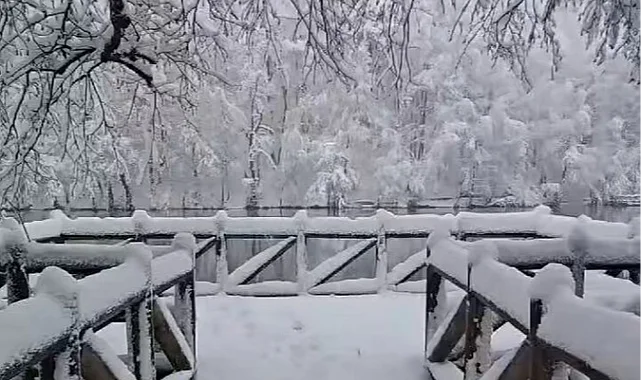 Bolu'da Yedigöller Milli Parkı yılın ilk karıyla beyaz gelinliğine büründü.BOLU (İGFA) - Doğa Koruma ve Milli Parklar 9. Bölge Müdürlüğü, Yedigöller Milli Parkı'ndan görüntüler paylaştı.Yılın ilk karıyla beyaz gelinliğe bürünen Bolu Yedigöller Milli Parkı, yağan karla birlikte adeta bir masal diyarına dönüştü.Paylaşımda, karla kaplanan ağaçlar ve donmuş göller, doğanın beyaz örtüsüyle birleşerek doğa severlere görsel şölen sunduğuna dikkati çekildi.