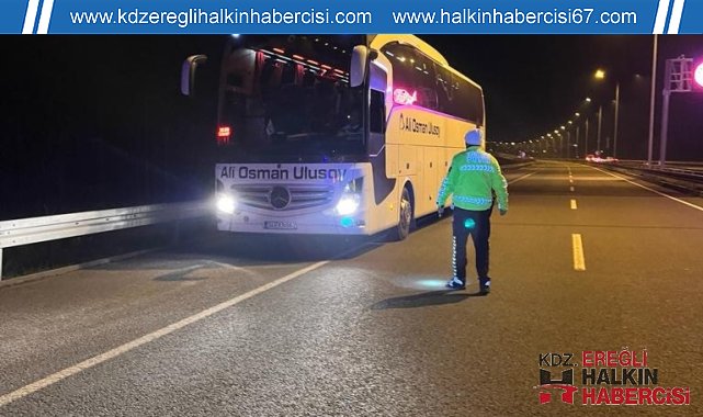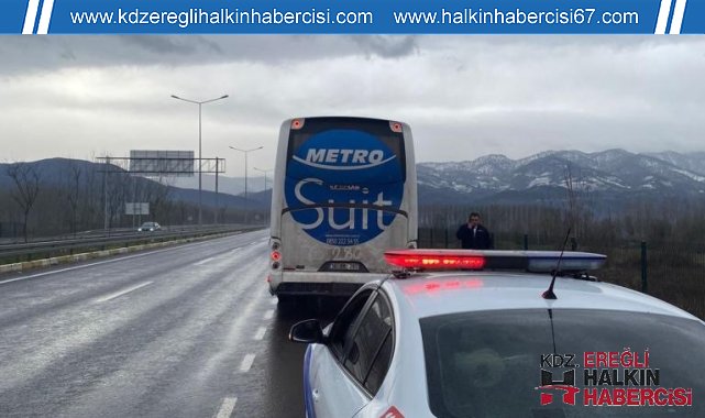 Düzce'de trafik ekiplerince yolcu otobüslerine yönelik denetim gerçekleştirildi.Düzce İl Emniyet Müdürlüğü Bölge Trafik Müdürlüğü'ne bağlı trafik ekipleri otoyol üzerinde şehirlerarası otobüslere yönelik denetimlerini sıklaştırdı. Vatandaşın can, mal ve trafiğin huzuru için yapılan denetimlerde 28 otobüs denetlendi. Bu otobüslerin bazılarına 28 bin 585 lira ceza kesildi. Ayrıca, trafik güvenliğini tehlikeye sokacak şekilde yolcu indirdiği tespit edilen bir otobüs şoförüne cezai işlem uygulanırken, ehliyetine el konuldu.