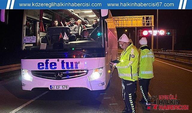 Düzce'de trafik ekiplerince yolcu otobüslerine yönelik denetim gerçekleştirildi.