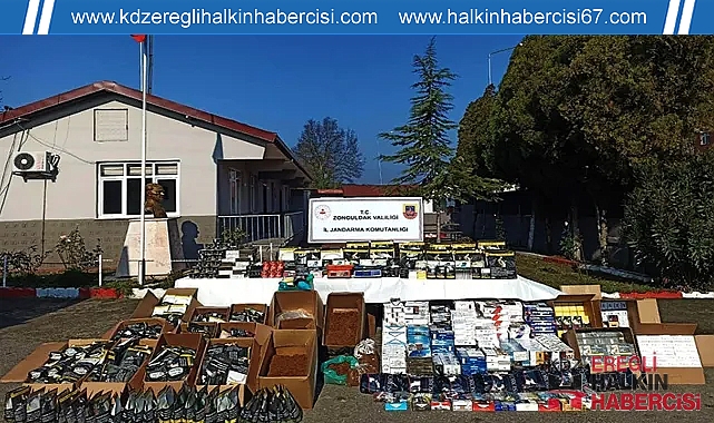 Zonguldak'ın Çaycuma ilçesinde; yüklü miktarda makaron, tütün, sigara sarma kağıdı ve ağızlık ele geçirildi.