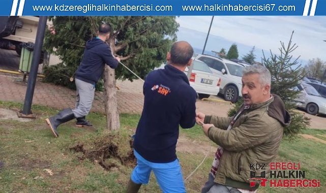 Zonguldak Bülent Ecevit Üniversitesi (ZBEÜ) kampüslerinde 9 Kasım 2023 Pazar günü Zonguldak'ta başlayan şiddetli yağmur ve fırtınadan zarar gören 68 ağaç, destek yapılarak tekrar ayağa kaldırıldı.