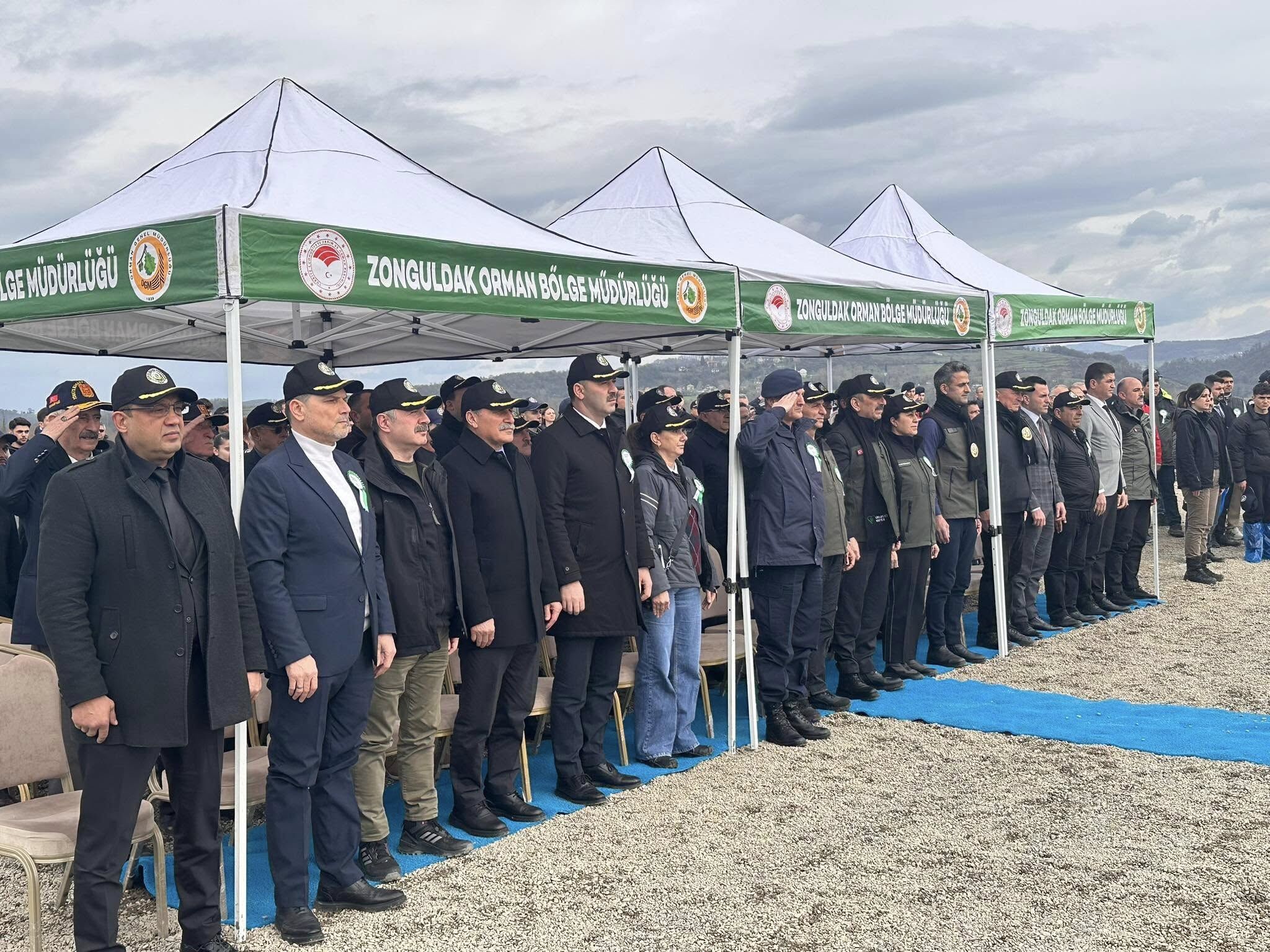 Çaycuma ilçesine bağlı Erenköy köyünde 21 Mart Ormancılık Haftası çerçevesinde düzenlenen fidan dikim töreninde 2 bin 25 adet fidan toprakla buluşturuldu.21 Mart Dünya Ormancılık Günü nedeniyle Zonguldak Orman Bölge Müdürlüğü tarafından fidan dikim etkinliğine; Vali Osman Hacıbektaşoğlu ve eşi Güney Hacıbektaşoğlu, Çaycuma Kaymakamı Adem Kaya,Zonguldak Orman Bölge Müdürü Hasan Keskin, AK Parti İl Başkanı Mustafa Çağlayan, MHP İl Başkanı Çağatay İpekçi daire amirleri, siyasi parti temsilcileri, sivil toplum kuruluşu temsilcileriyle muharip gaziler, öğrenciler ve vatandaşlar katıldı.Etkinliğin açılışında konuşan Zonguldak Orman Bölge Müdürü Hasan Keskin, ormanların geleceğimizin emaneti bilinciyle korunmasının ve yaşatılmasının önemini vurgulayarak, "Bugün, 21 Mart Dünya Ormancılık Günü ve Haftası vesilesiyle burada sizlerle bir araya gelmekten büyük mutluluk duyuyorum. 1971 yılından bu yana kutlanan bu anlamlı gün, bizlere ormanların doğaya, insana ve tüm canlılara sunduğu sınırsız katkıları hatırlatmaktadır. Tarım ve Orman Bakanlığımız ile Orman Genel Müdürlüğümüzün Türkiye Yüzyılı vizyonu doğrultusunda, bu yılın temasına baktığımızda gıda güvenliği ve sürdürülebilir beslenme konusunun öne çıktığını görüyoruz. Dünya nüfusu her geçen gün artarken, iklim değişikliği, doğal kaynakların azalması ve çevresel bozulmalar gıda üretimini ve erişimini tehdit ediyor. Küresel gıda krizine karşı doğanın döngülerine uygun, sürdürülebilir çözümler üretmemiz gerekiyor. Bugün burada, hep birlikte bir söz verelim: Ormanlarımızı koruyacağız, geliştireceğiz ve gelecek nesillere aktaracağız. Ağaçlandırma çalışmalarına daha fazla destek olacağız. Doğal kaynaklarımızı bilinçli kullanacağız. Sürdürülebilir orman yönetimi ile hem doğayı hem de ekonomiyi güçlendireceğiz. Unutmayalım ki, orman varsa hayat var. Ormanlar sadece yeşil alanlar değil, aynı zamanda soframızdaki ekmeğin, meyvenin, suyun ve nefes aldığımız havanın kaynağıdır" dedi.Zonguldak Valisi Osman Hacıbektaşoğlu törende yaptığı konuşmada, "Bugün buraya gelmemizin sebebi Dünya Ormancılık Günü, 21 Mart Dünya Ormancılık Günü ve Orman Haftası. Aynı zamanda bugün Sultan Nevruz, Nevruz Bayramı. Nevruz Bayramınız kutlu olsun, Dünya Ormancılık Günü kutlu olsun, Orman Haftası kutlu olsun. Tabii, az önce Sayın Bölge Müdürümüz çok güzel anlattılar. Oksijenimiz, havamız, temiz suyumuz, gıda güvenliğimiz-hepsi orman varlığına bağlı. Esasında bu doğal zincirin en önemli halkasıdır. Çok şükür, bizim bölgemiz ve ilimiz bu konuda çok zengin. Ülkemiz de orman varlığı açısından zengin ülkeler arasında yer almakta. Çok kıymetli bir orman varlığımız var ve bunu uzun zamandır idrak eden, çok tecrübeli bir teşkilatımız, devletimiz, hükümetimiz ve bakanlığımız var. Bu konuda ciddi çalışmalar yürütülmekte. Son yıllarda Türkiye, dünyada orman varlığı artan ender ülkelerden biri hâline geldi. Orman varlığının insan yaşamı, canlı yaşamı, dünyamız ve özellikle ülkemiz için ne kadar önemli olduğunu kavramış bir yönetim anlayışı mevcut. Tarım ve Orman Bakanlığımızı, Orman Genel Müdürlüğümüzü ve özellikle Zonguldak Orman Bölge Müdürlüğümüzü; orman varlığımızın geliştirilmesi, üretimin artırılması, orman köylerinin kalkındırılması ve sel felaketleriyle mücadelede yürüttükleri çalışmalardan dolayı tebrik ediyorum. Ayrıca, iklim değişiklikleri nedeniyle çok ciddi kuraklık tehlikesiyle karşı karşıyayız. Her yıl daha önce hiç görmediğimiz şekilde yangınlara maruz kalıyoruz. Orman yangınlarıyla mücadelede büyük bir kahramanlık sergileyen Orman Bölge Müdürlüğümüze ve tüm ormancılarımıza hepimiz adına yürekten şükranlarımı sunuyorum.Bugün burada hem Dünya Ormancılık Günü’nü kutluyor hem de Orman Bölge Müdürlüğümüzün çok anlamlı bir faaliyetine refakat ediyoruz" ifadelerine yer verdi.Konuşmaların ardından protokol üyeleri ve vatandaşlar fidan diktiler. Törende Defne, Kocayemiş Limonu, Selvi, Kuşburnu ve Kızılcık türlerinde 2 bin 25 adet ağaç fidanı toprakla buluştu. Öte yandan fidan dikim törenine katılanlara şapka ve atkı hediye edildi.