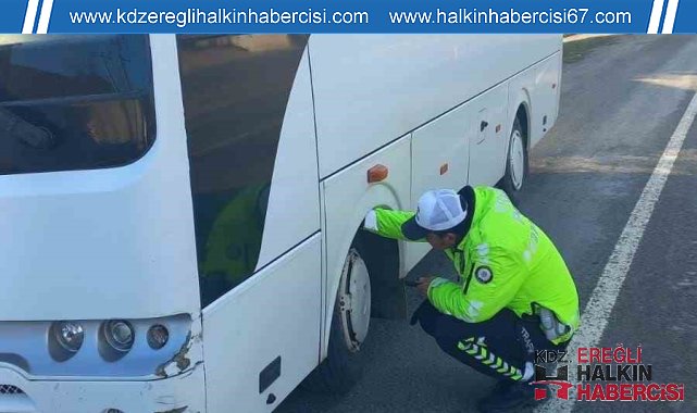 Zonguldak'ta Emniyet Müdürlüğü tarafından kış denetimlerine yönelik düzenlenen denetimlerde 84 araç ve sürücüsüne 255 bin 83 lira idari para cezası uygulandı.Zonguldak İl Emniyet Müdürlüğü ekiplerince şehirlerarası karayollarında yolcu veya eşya taşımalarında kullanılan taşıtlarda 1 Aralık - 1 Nisan tarihleri arasında kış lastiği kullanma zorunluluğu bulunan araçlar üzerinde;1-2-3 Aralık 2023 tarihlerinde denetim gerçekleştirildi. Zonguldak İl Emniyet Müdürlüğü'ne bağlı trafik ekiplerince, birimlerin sorumluluk güzergahlarında 24 saat esasına göre 'Eş Zamanlı Denetim' şeklinde, yük ve yolcu taşımacılığı yapan araçlar üzerinde yapılan Kış Lastiği Denetimi uygulamaları sonucunda; bin 689 araç ve sürücüsü denetlendi. 2918 sayılı Karayolları Trafik Kanunu'nun; 27 araca muayene süresini geçirmek, 4 sürücüye alkollü araç kullanmak, 1 sürücüye alkol reddi, 3 sürücüye fazla yolcu taşımak, 4 sürücüye takograf kullanmamak, 3 sürücüye ehliyetine yetkili merciler tarafından el konulduğu halde araç kullanmak, 2 sürücüye taşıt kullanım süresine riayet etmemek, 1 sürücüye yükün karayoluna düşecek şekilde yüklemek, 2 sürücüye sigortasız araç kullanmak, 1 sürücüye yapılan teknik değişikliği 30 gün içinde ruhsata işletmemek, 2 sürücüye geçerlilik sürücü dolan sürücü belgesi ile araç kullanmak, 4 sürücüye fazladan yolcu almak, 3 sürücüye kış lastiği takmamak, 15 araca yetki belgesiz taşımacılık yapmak, 3 araca psikoteknik belgesi olmayan sürücü çalıştırmak, 10 araca mesleki yeterlilik belgesi olmayan sürücü çalıştırmak maddelerinden olmak üzere 84 araç ve sürücüsüne toplam da 255 bin 83 TL trafik idari para cezası uygulandı.Ticari araç kullanan 5 sürücünün sürücü belgesine geçici olarak el konuldu.