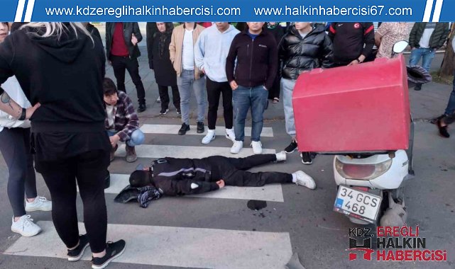 Zonguldak'ın Ereğli ilçesinde seyir halinde olan otomobil sürücüsü, dikkatsizliği neticesinde motorlu kuryeye çarptı. Meydana gelen kazada 1 kişi yaralandı.Kaza, Ereğli sahil yolu mevkisinde meydana geldi. Sahil yolunda sol şeritte hareket halinde olan C.A. hakimiyetindeki 67 ACF 257 plakalı Mazda markalı otomobil sürücüsü aynı istikametten sağ şerite gelen A.B.K.'nin kullandığı 34 GCS 468 plakalı motosikleti fark etmedi. Sağ şeride geçiş yapan otomobil sürücüsü C.A., dikkatsizliği nedeniyle motorlu kuryeye çarptı. Meydana gelen kazada kurye A.B.K. yaralandı. Olayı gören çevredeki vatandaşlar yardıma koşarak 112 Acil Servisi ve polisi arayarak yardım istedi. Yerde yaralı halde yatan kurye ambulansla hastaneye kaldırıldı.Kazayla ilgili soruşturma başlatıldı.