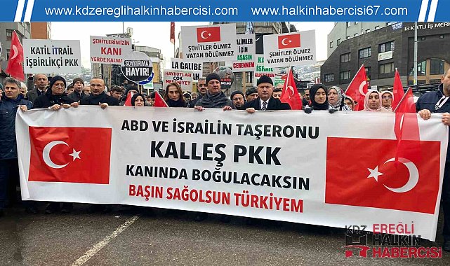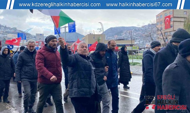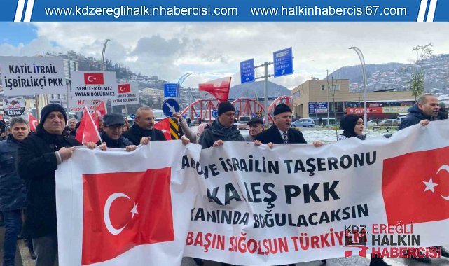 Zonguldak'ta sivil toplum kuruluşları tarafından Filistin'de yaşanan savaş ve Pençe-Kilit Harekatı'nda 9 askerin şehit düşmesiyle ilgili yürüyüş düzenlendi.