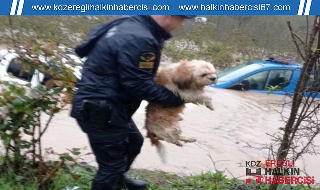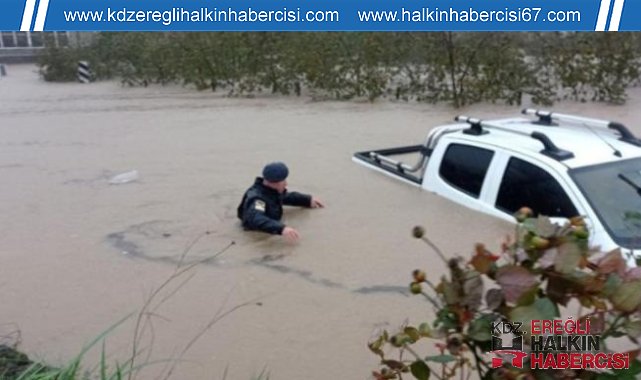 Zonguldak'ın Kdz. Ereğli ilçesine bağlı Kızılca beldesinde şiddetli yağışlar su baskınlarına yol açarken, araçlarında mahsur kalan 4 kişi ve 2 köpek jandarma ekipleri tarafından kurtarıldı.