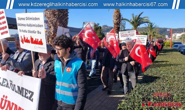 Zonguldak'ın Ereğli ilçesinde, teröre tepki ve Gazze'ye destek için yürüyüş gerçekleştirildi.